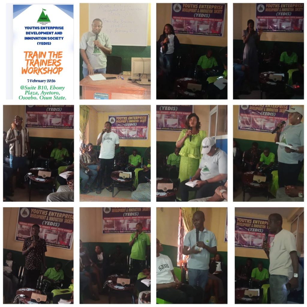 The Youths Enterprise Development and Innovation Society (YEDIS) held a key ‘train the trainers’ workshop on Saturday, February 7, 2026, at its headquarters in Osogbo, Osun State, Nigeria. The event brought together YEDIS coordinators from 15 zones across Southwest Nigeria to develop skills in artificial intelligence (AI), digital technology, and leadership, to boost impactful community development.